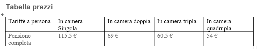 Siamo riusciti ad ottenere un ottimo prezzo che prevede trattamento di pensione completa