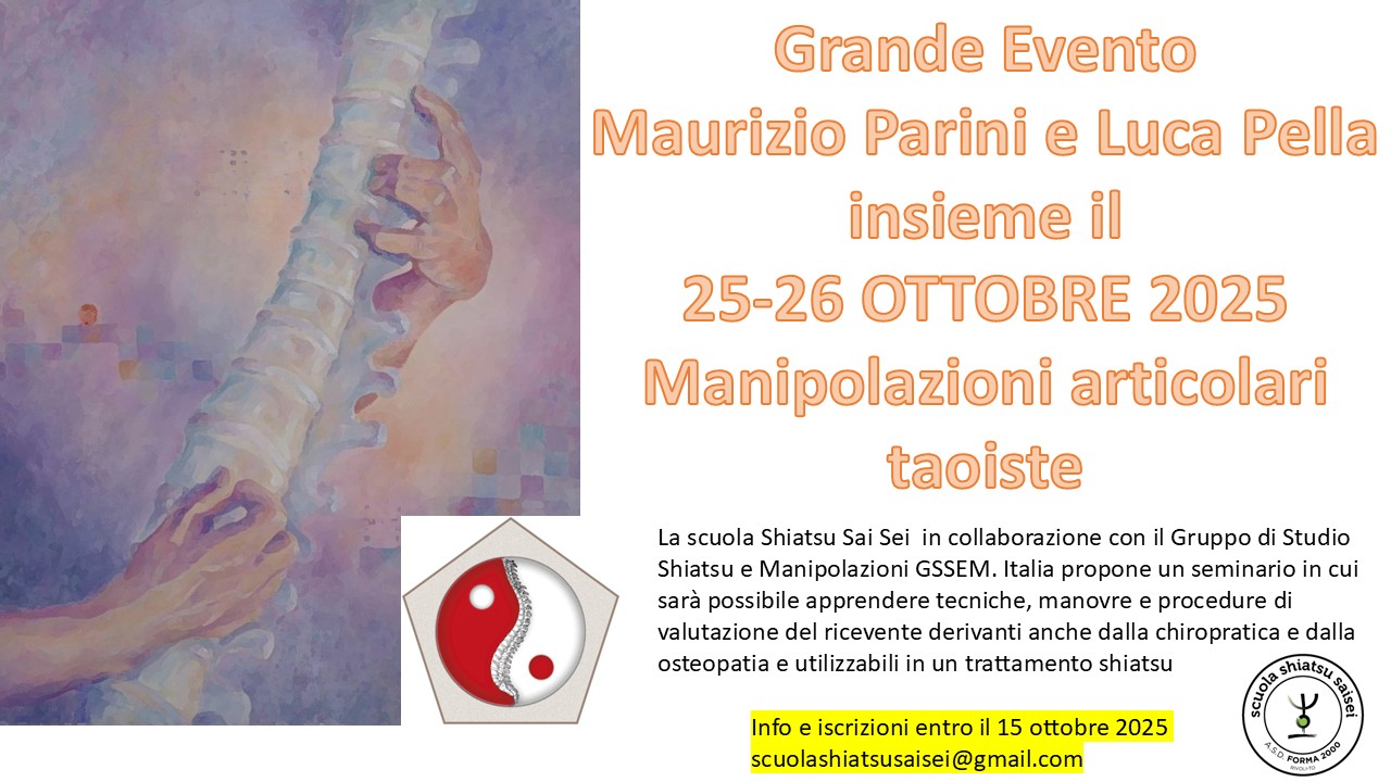 Evento straordinario, in collaborazione con il Gruppo di Studio Shiatsu e Manipolazioni –GSSEM.Italia- propone un seminario in cui sarà possibile apprendere tecniche, manovre e