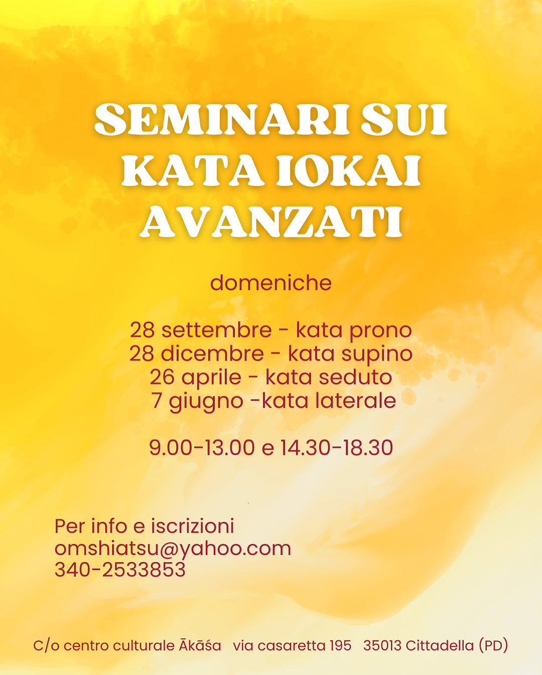 La scuola OmShiatsu della rete Centro TAO Network propone un ciclo di quattro incontri dedicati allo studio delle tecniche avanzate di trattamento, attraverso l'approfondimento dei kata Iokai di livello avanzato.