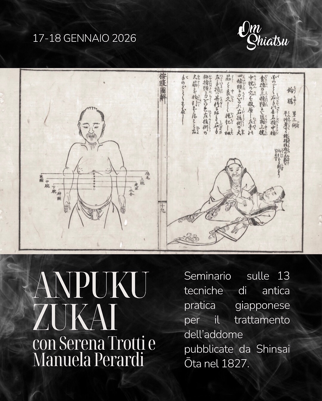 Durante le due giornate di corso studieremo Anpuku seguendo la traccia del libro di Shinsai Ota: tratteremo le tre manualità principali (i 3 Tesori) le 13 tecniche di trattamento e vedremo come applicarli nella cura delle principali disarmonie dell’addome.